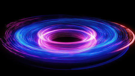 Captivating light trails form a glowing circular pattern against a dark, mysterious background.
