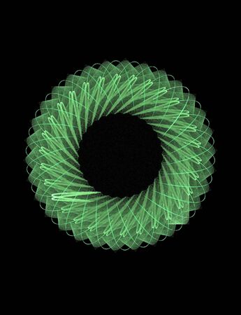 A circular light painting of a colorful swirl on black background, AI