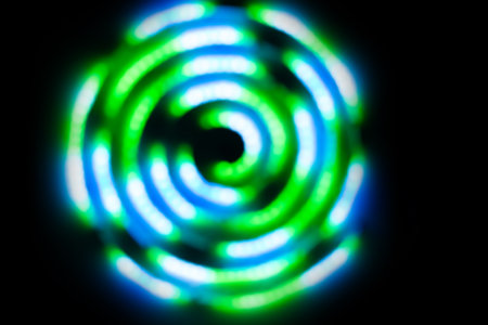 Spinning top creates mesmerizing patterns in vibrant, blurred motion during long exposure shot
