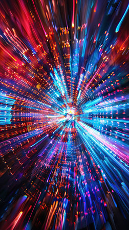 Abstract light trails forming a tunnel of neon colors, creating a dynamic and futuristic sense of high speed