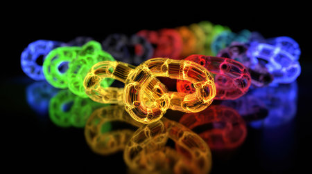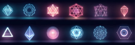 A captivating scene featuring glowing geometric shapes in vibrant colors, perfect for modern digital art and creative projects. The dark background enhances the visual impact.