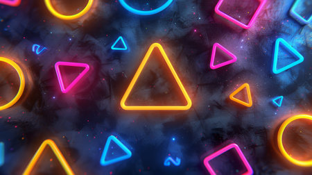 Explore a captivating arrangement of geometric shapes illuminated by vibrant neon lights. A modern and artistic composition that sparks creativity and imagination.