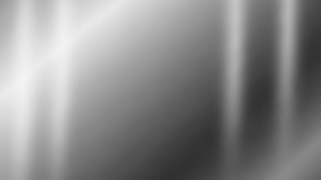 Abstract blurred metallic surface with diagonal light reflections and soft gradients of white, grey, and blue.