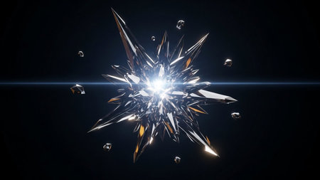 A mesmerizing abstract crystal formation showcases intricate reflective surfaces and luminous highlights against a dark backdrop, perfect for creative projects.