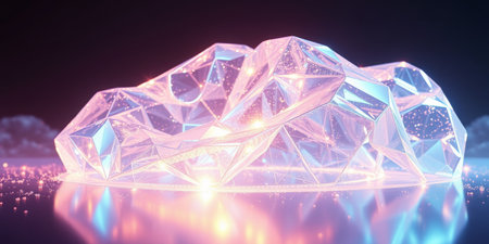 A crystalline structure with a futuristic aesthetic glows with pink and blue light.
