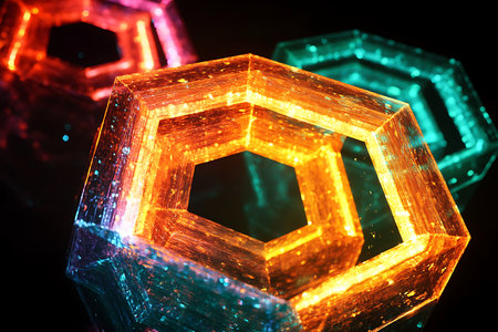 Geometric hexagonal structure with holographic light effects, symbolizing cutting-edge innovation