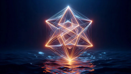 Interlinked glowing hexagons floating in D space forming a seamless network of light
