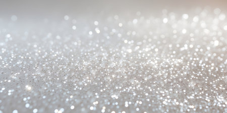 Sparkling silver glitter background featuring the glamorous bokeh effect for festive light compositions.