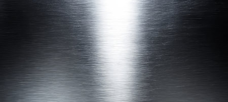 This brushed aluminum surface features a smooth texture with subtle reflections, perfect for background use in a variety of design applications and projects.