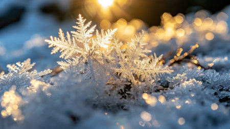 Snowflakes glistening as sunlight reflects on them, creating a stunning winter scene