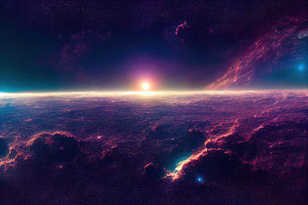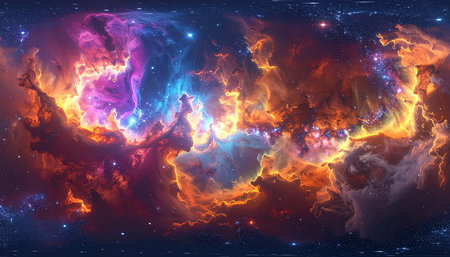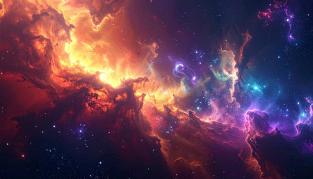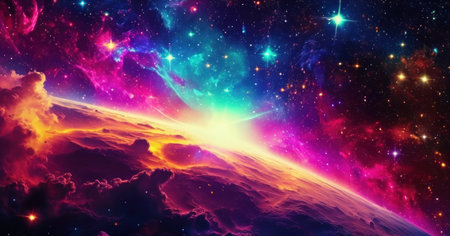 A Vibrant cosmic background with colorful nebula and stars, creating mesmerizing space scene. Perfect for science fiction themes and celestial designs