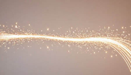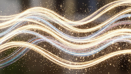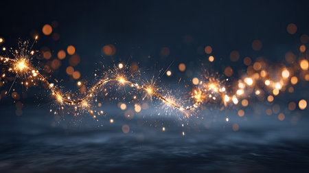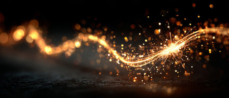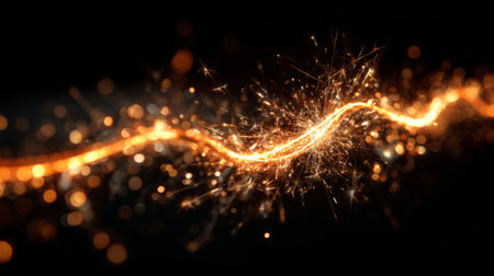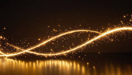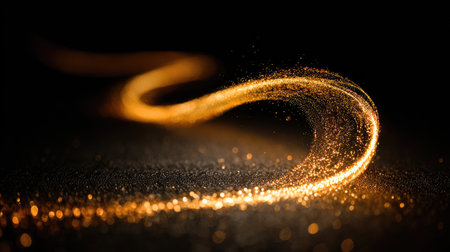 A mesmerizing golden light trail dances on a dark background, creating a sparkling effect that adds a touch of magic to any creative project or visual design.
