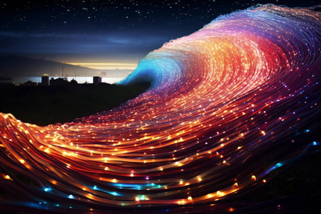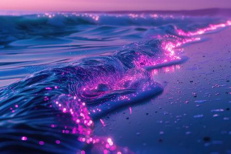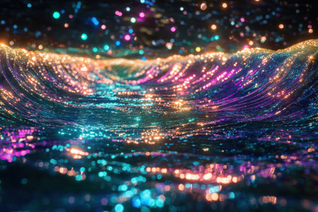 Illuminated Waves at Night with Generative AI.