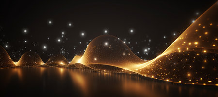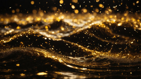 Golden Wave of Luxury Abstract Background With Swirling Gold Particles and Festive Bokeh Lights