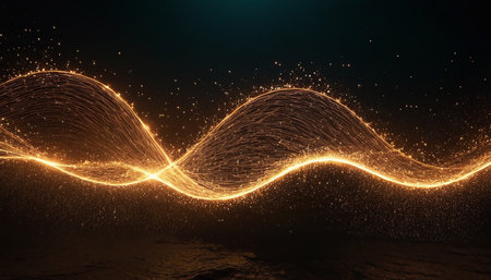 3D Illustration of a Blue Wave with Glowing Particles