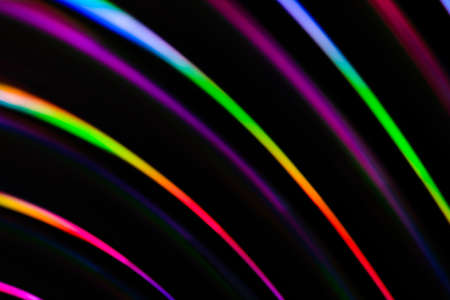 Neon rainbow strips on dark background. Soft focus Abstract rainbow color wave strips horizontal background