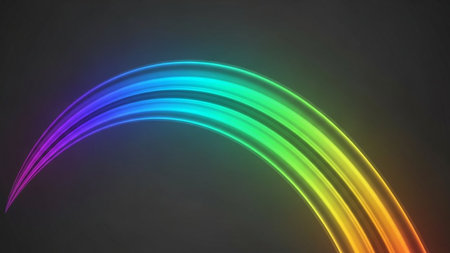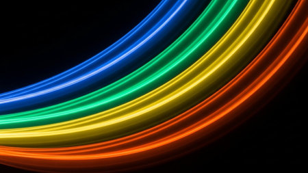 Close-up illustration of a neon rainbow background, showing vibrant colors and glowing effects. Ideal for topics related to vibrant design, colorful visuals, and modern aesthetics.