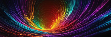 Light reflection. colorful background. digital banner. Luminous blurred glowing rainbow shining rays on dark graphic illustration.