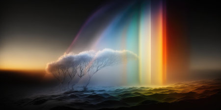 Solitude landscape with light spectrum gradient of electromagnetic field. superlative generative AI image.