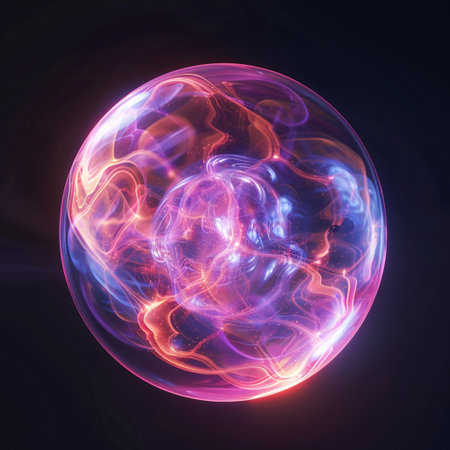 Glowing plasma ball emits colorful electric currents, creating a mesmerizing and surreal atmosphere