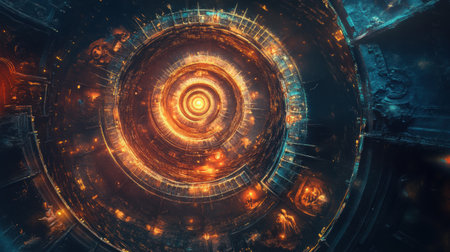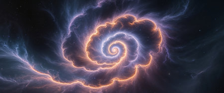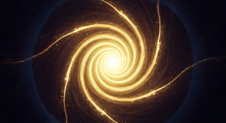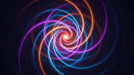 An intricate spiral of radiant light and energy unfolds in a vibrant and abstract cosmic scene. This stunning display captivates the viewer with energetic swirls and vivid colors.