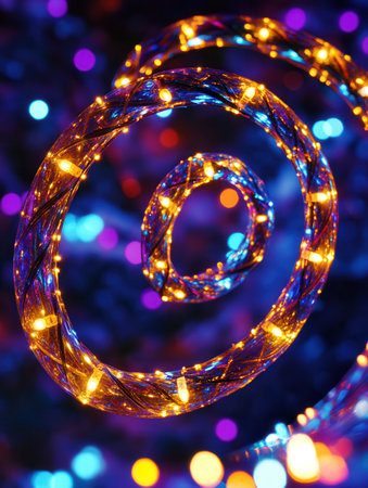 Colorful lights twist in a spiral formation, bringing a vibrant and enchanting atmosphere to holiday festivities during winter nights.