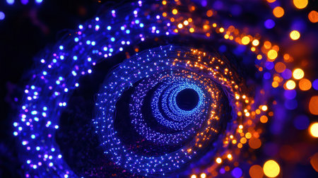 A captivating abstract swirl of vibrant lights creating an enchanting vortex effect, ideal for use in various visual projects or digital designs.