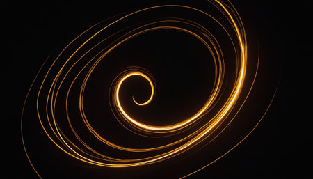 This image captures a mesmerizing display of golden spiral light trails against a dark background. The intricate patterns create a sense of movement and depth, evoking a feeling of wonder and fascination. The light trails are symmetrical and form a captivating circular design, highlighting the beauty of abstract art and the magic of light.