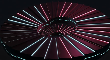 Generative AI Image of Neon Digital Modern Abstract Bright Peripheries with Round Circle Pattern