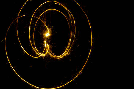 Spiral lights with sparks on a black background. Christmas lights on a long exposure