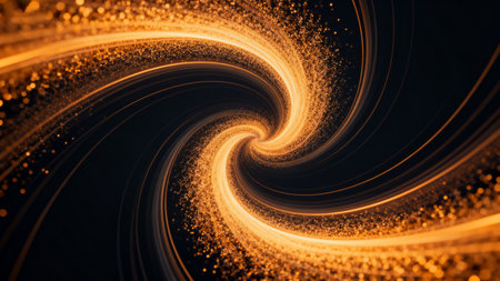 Glowing 3D golden vortex with intricate, shimmering spirals, symbolizing luxurious movement. -