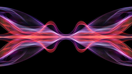 An abstract design featuring vibrant glowing light waves in a dark background, perfect for creative projects, artistic expressions, and modern themes.