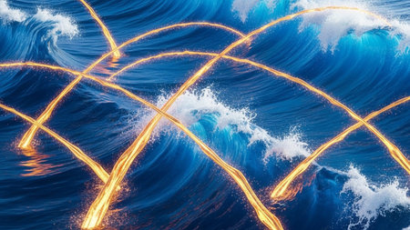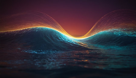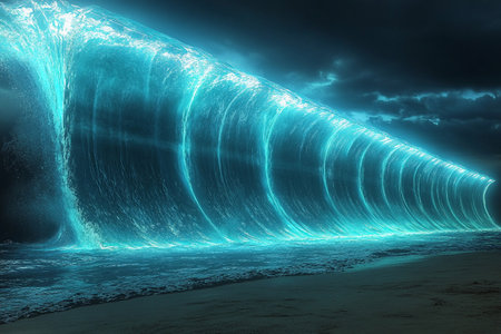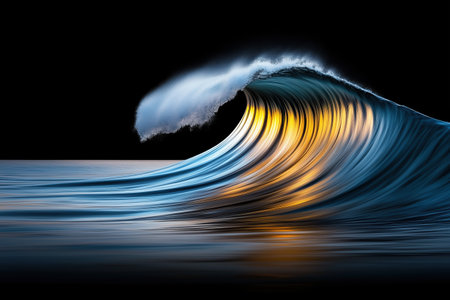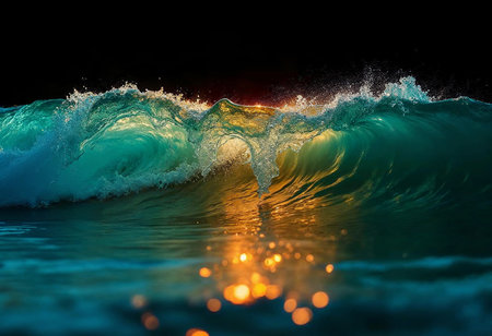 Illuminated Waves at Night with Generative AI.