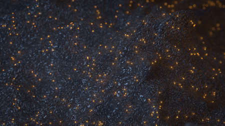 3d rendering of abstract blue particles with depth of field and bokeh effect