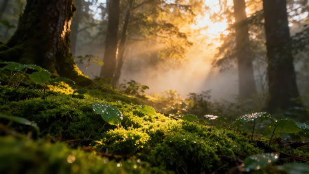 Serene digital rendering captures tranquil mood via intricate textural details and diffused bokeh highlights, employing precise layering for depth. Suited for environmental protection graphics, wellness app interfaces, sustainable lifestyle promotions, and nature retreat branding targeting eco-aware consumers. Versatile for editorial spreads, digital wallpapers, and me... AI-generated illustration.