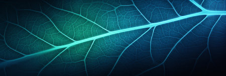 This abstract illustration features intricate blue branching structures set against a dark backdrop. The artwork showcases a complex network of lines and forms, creating a visually compelling design. Its color palette and style lend themselves well to various commercial uses, including website design, advertising, and editorial content.