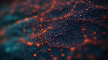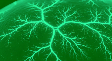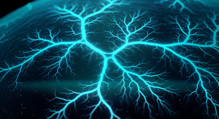 Abstract electric nerves or lightning-style glowing branches over dark background. Sci-fi, energy, or biology themed wallpaper or illustration. Generative AI