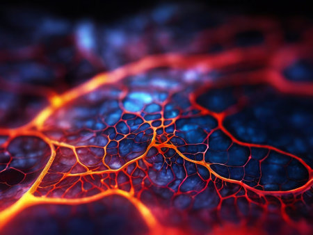 abstract of blood vessels as glowing fractals. Generative AI