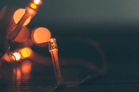 Warm light illuminated garland close up on dark background