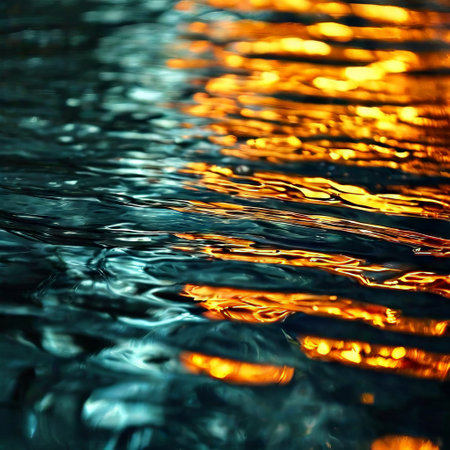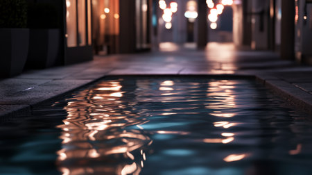 This mesmerizing image captures the gentle ripples on a water surface, enhanced by soft bokeh lights that create a serene and calming atmosphere perfect for backgrounds.