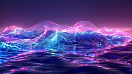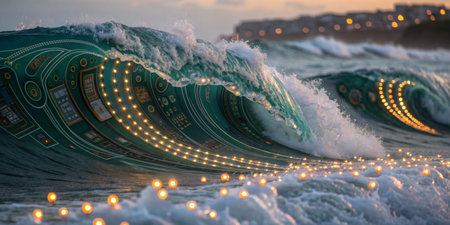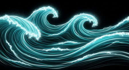 Illuminated Waves at Night with Generative AI.