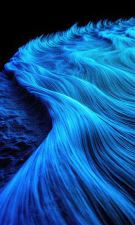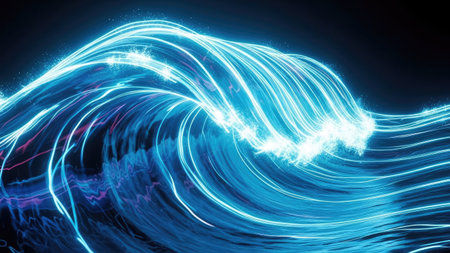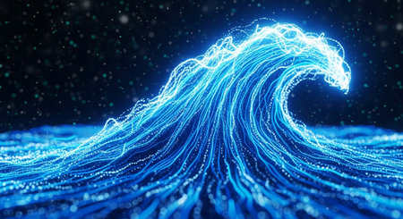 3D Illustration of a Blue Wave with Glowing Particles