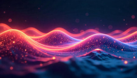 Abstract Glowing Waves with Particles and Vibrant Light