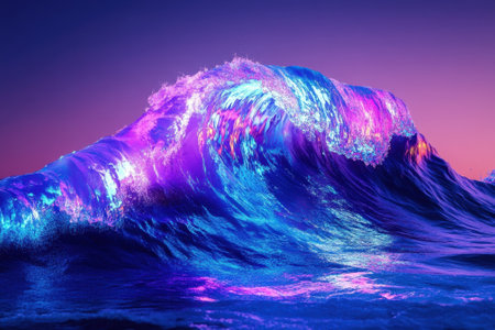 A stunning ocean wave crests with vibrant colors during twilight, creating a mesmerizing coastal view.