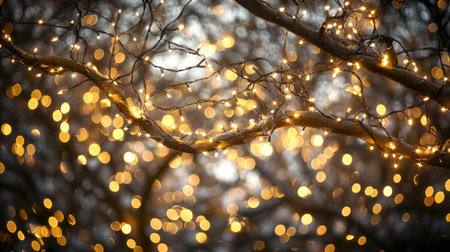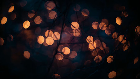 Bokeh lights on the branches of a tree. Abstract background.
