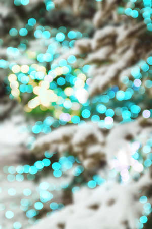 Blurred Christmas background with bokeh defocused lights and snow