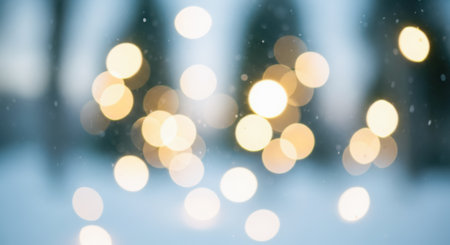 festive blurry snowy winter christmas background with circular bokeh lights