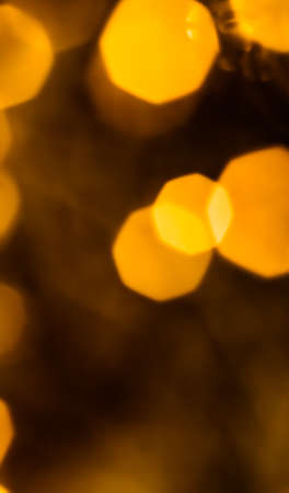 Beautiful natural bokeh of the yellow lights. Abstract Christmas New Year backdrop for text or advertising. Template for banner or party invitation