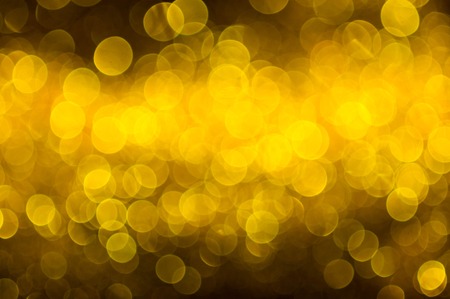 Blurred yellow bokeh lights against a dark backdrop, creating a warm and festive atmosphere.