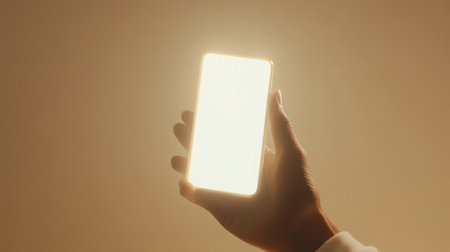 A hand showcases a smartphone featuring a bright white screen, contrasting beautifully with the soft beige background that enhances the clean modern look.
